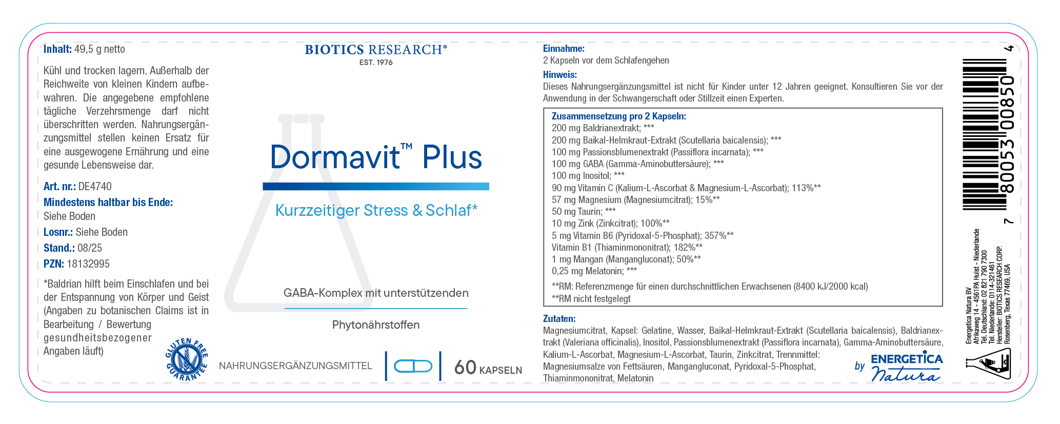 Die Inhaltsstoffe von Dormavit Plus (für 2 Kapseln) tragen bei zu: