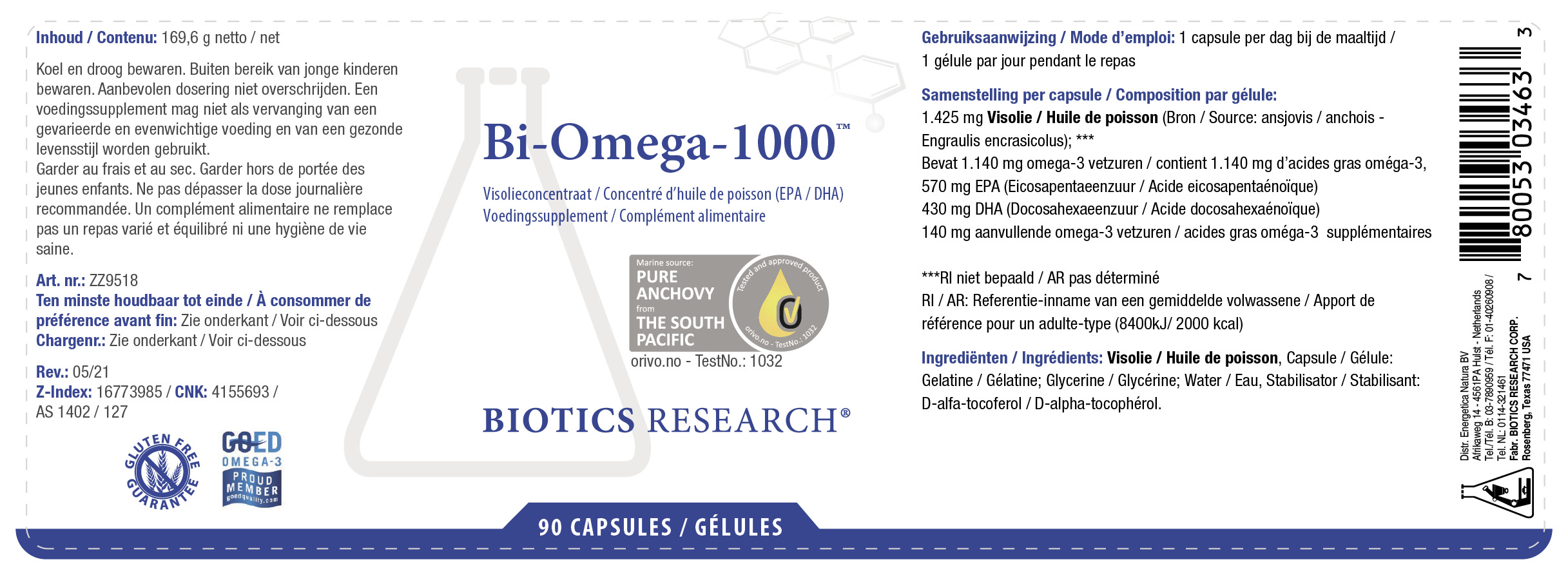 Bi Omega 1000 est une huile de poisson hautement purifiée avec une concentration élevée d’EPA et de DHA sous forme de triglycérides. Cette huile de poisson est issue d’anchois, petits poissons moins touchés par les polluants et pêchés dans le cadre d'une approche durable.