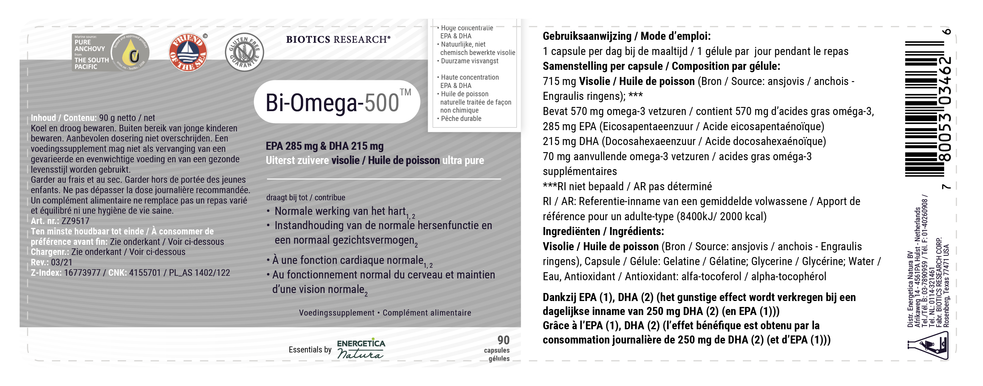 Contribution des ingrédients de Bi-Omega-500 (pour 1 gélule) :