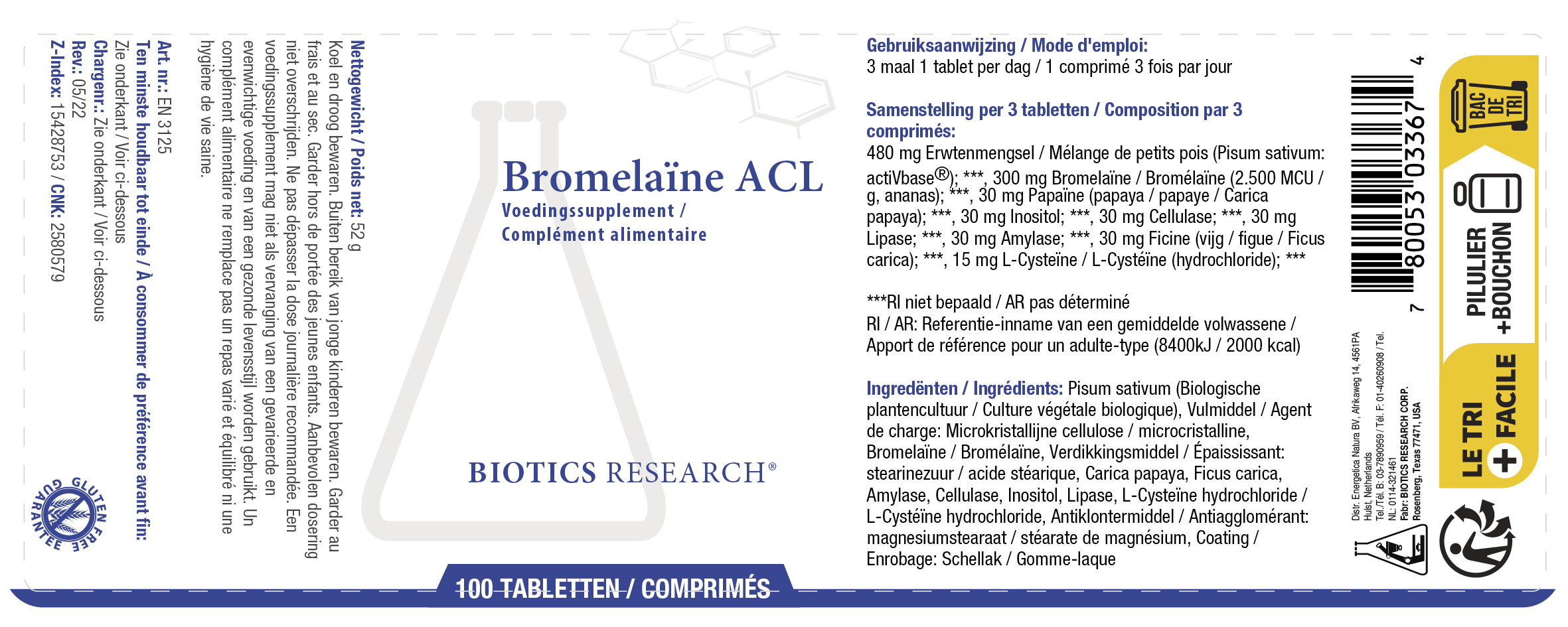 - 100 mg Bromélaïne (2500 MCU/g) (d'ananas - Ananas comosus)